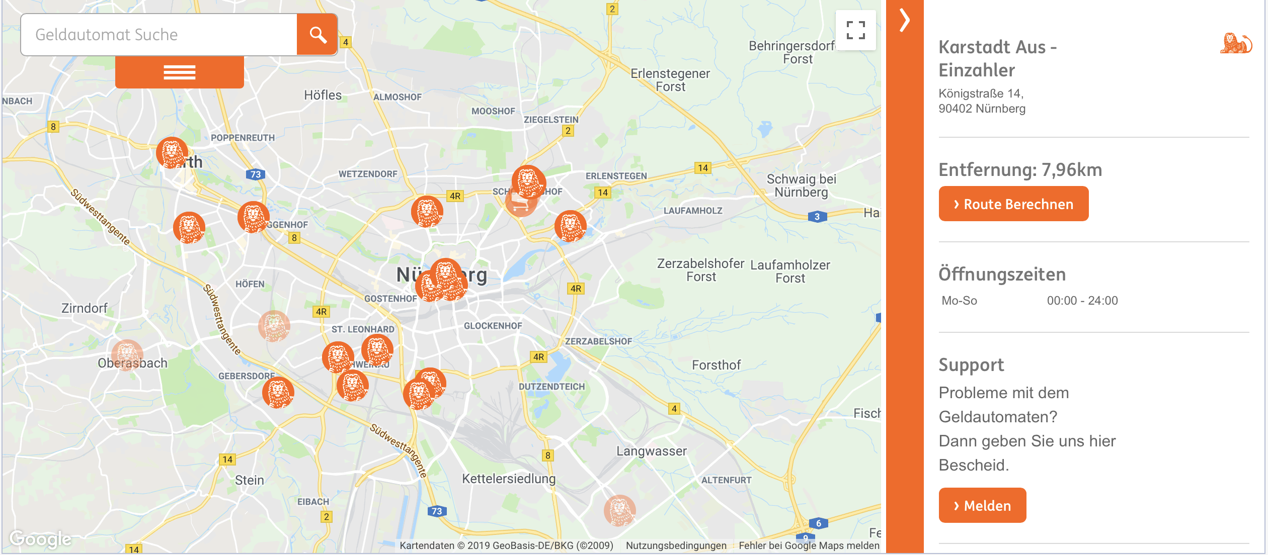 Warambuffet September 28, 2019 Falls es noch jemand ausser mir nicht mitbekommen hatte: Inzwischen gibt es einige ING-Einzahlautomaten in größeren Städten, man erkennt sie in der Geldautomatensuche markiert als "Aus- Einzahler" und von außen am zweiten Geldfach. Es lassen sich wohl je Transaktion bis zu 1.000€ Bargeld auf ein Konto der eingelegten Karte einzahlen. Diesen Beitrag teilen Link zum Beitrag
