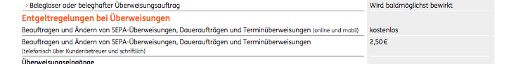heldic April 24, 2018 · bearbeitet April 24, 2018 von heldic 1 hour ago, vormtor said: ING-DiBa ändert die AGBs. Telefonische Überweisungen und Daueraufträge kosten ab dem 1. Juli 2,50 Euro. Bei der Bargeldverfügung wird ein Mindestbetrag von 50 Euro eingeführt, für die Giro- und VISA-Card. 1 hour ago, Noob1981 said: was? dauerauftrag für 2,5? damit zieht das gehaltskonto ein haus weiter ...aber nur für telefonische/persönliche Beauftragung von Daueraufträge. (https://www.ing-diba.de/pdf/kundenservice/konditionen/agb/agb-girokonto.pdf - S.31) Diesen Beitrag teilen Link zum Beitrag