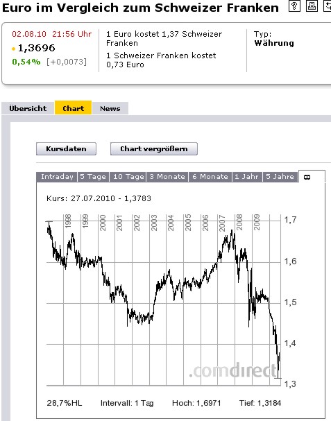 d.h. weil der EUR so stark gegenüber dem Franken an Wert verloren hat?