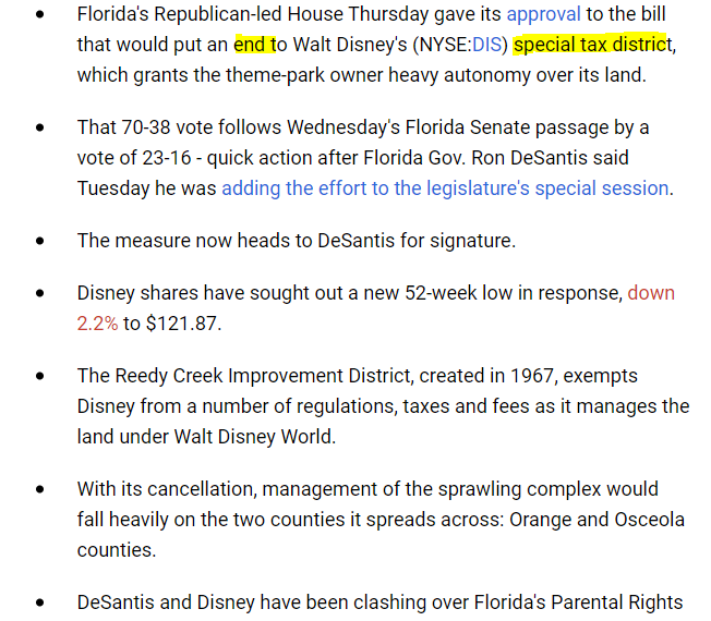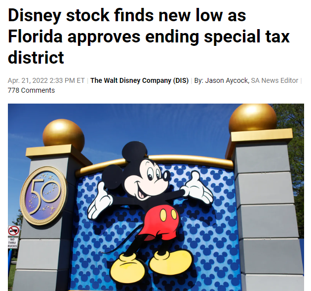 Owl April 22, 2022 https://seekingalpha.com/news/3825454-disney-stock-finds-new-low-as-florida-approves-ending-special-tax-district Diesen Beitrag teilen Link zum Beitrag