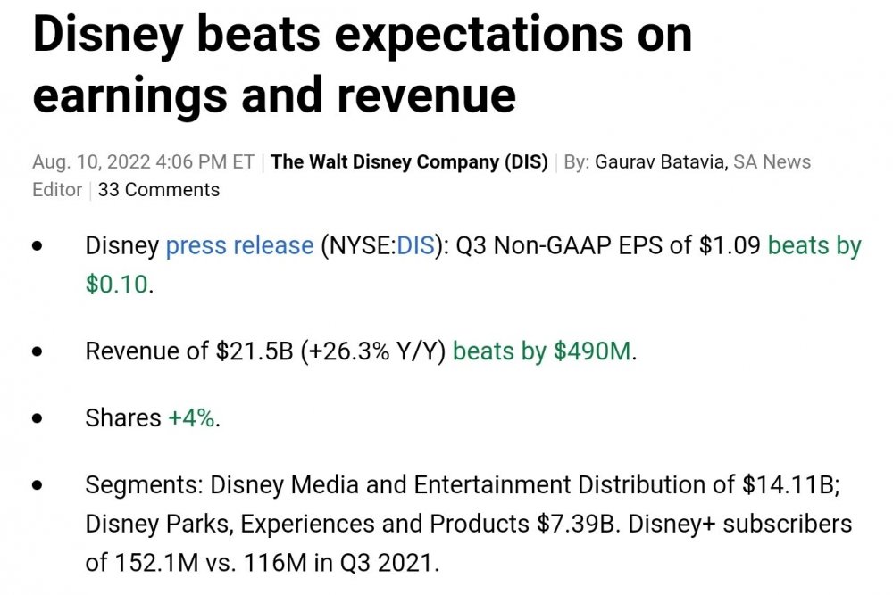 opera August 10, 2022 · bearbeitet August 10, 2022 von opera https://seekingalpha.com/news/3870988-disney-non-gaap-eps-of-1_09-beats-0_10-revenue-of-21_5b-beats-490m Diesen Beitrag teilen Link zum Beitrag