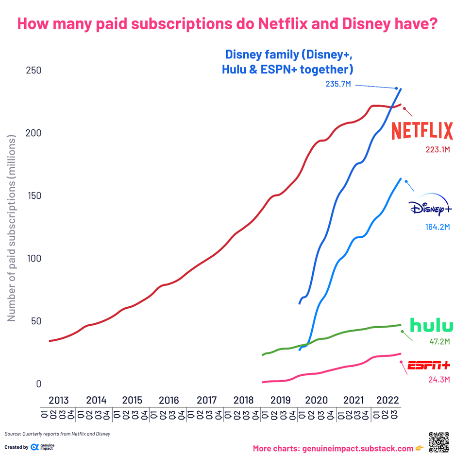 Schildkröte Dezember 4, 2022 · bearbeitet Dezember 4, 2022 von Schildkröte Zitat Disney ... verlangte von den Abonnenten ... weit weniger Geld als Konkurrenten wie Netflix, HBO Max oder Warner Bros. Discovery. Das lockt zwar Kunden an – Disney+ hat Netflix überholt bei der Abonnentenzahl –, bringt aber noch keine Gewinne. Im Gegenteil. Disneys Streaming-Sparte fuhr im Schlussquartal 1,47 Milliarden Dollar Verlust ein. ... Igers oberste Priorität wird es sein, das Streaming-Geschäft auf Profitabilität zu trimmen. Rentabilität steht jetzt an erster Stelle, nicht Abonnentenwachstum. Quelle: WiWo Diesen Beitrag teilen Link zum Beitrag