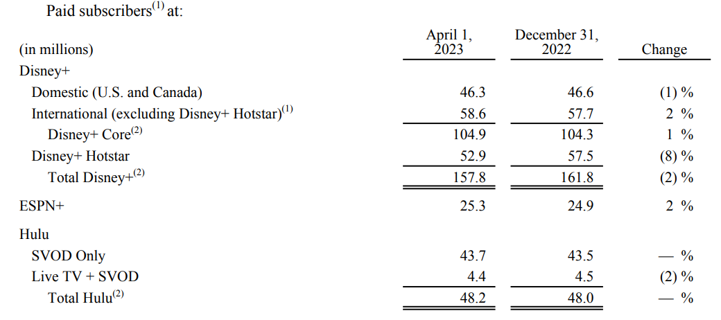 Ich verstehe, dass die Aktie verkauft wird, aber das ändert nichts an meiner Einschätzung, dass dies ein sehr positives Quartal war. Die Gewinnziele wurden trotz aufrechterhaltener Kosteneinsparungsprognosen angehoben. Das Streaming-EBIT liegt genau im Plan (sogar ein wenig darüber). Die Buchungen im Erfahrungssegment deuten auf eine robuste Nachfrage in einem sich verschlechternden makroökonomischen Umfeld hin. Der Rückgang bei den Abonnenten stört mich nicht im Geringsten, da Disney jetzt eine Minderheitsbeteiligung an Star India hält. Und sonst? Das Wachstum der Disney+ Kernabonnenten lag leicht über den Erwartungen. Jeder, der dies als schlechten Bericht bezeichnet, schaut auf die Reaktion des Aktienkurses. Ich würde ihnen raten, diesen Bericht zu lesen, bevor sie zu diesem Schluss kommen. Oder lassen Sie es... nur noch mehr Ineffizienz, die ich ausnutzen kann. Ich bin mit den Ergebnissen zufrieden.