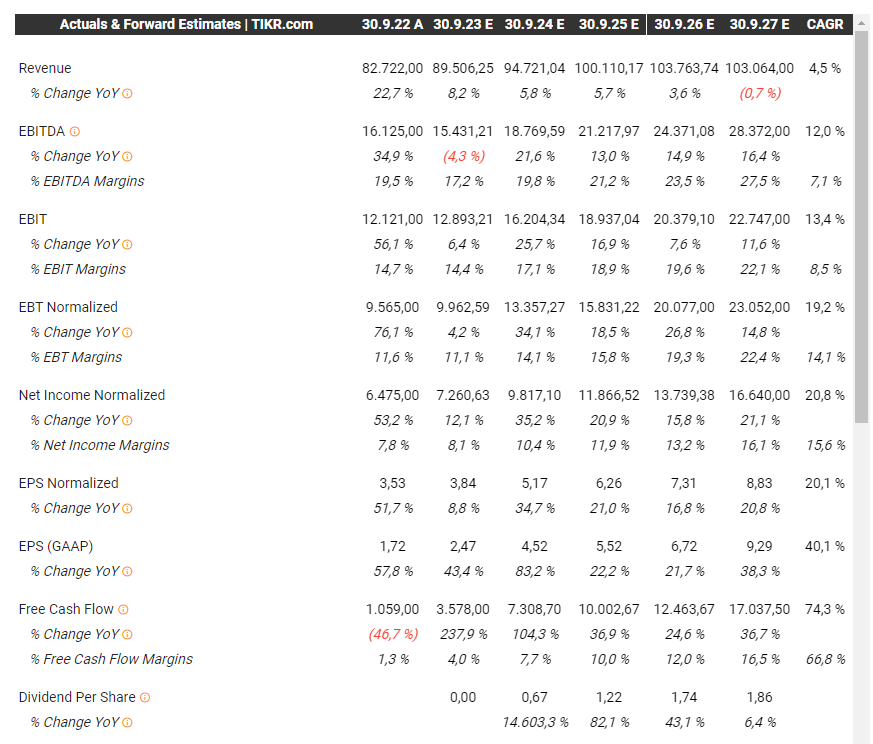 Anhebung der Jahresprognose für den FCF von etwa 8 Mrd. $ auf mehr als 8 Mrd. $ gegenüber den Schätzungen von 8,5 Mrd. $.