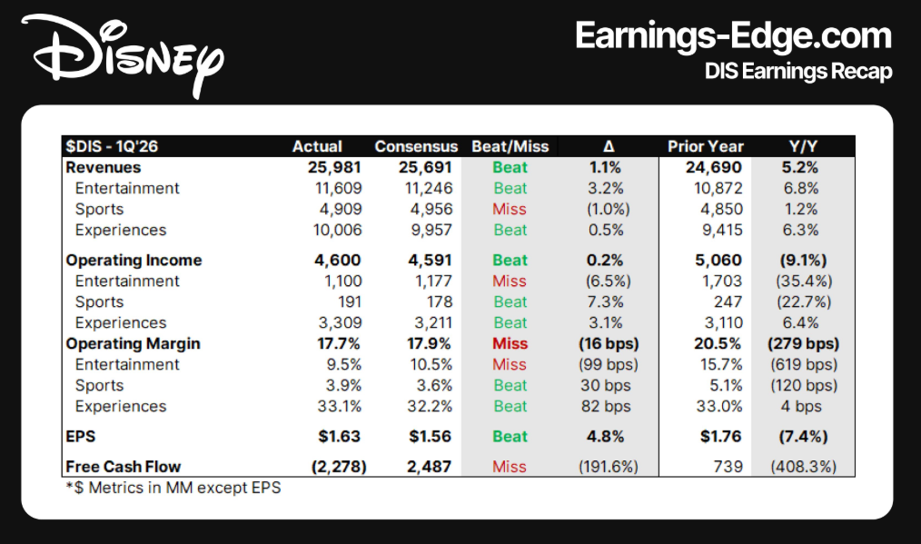 Gast250606 August 7, 2024 · bearbeitet August 7, 2024 von Maestro315 Disney mit Umsatz und EPS Beat , Cashflow aber - 24% Prognose für das GJ'24: Neues bereinigtes EPS-Wachstumsziel: +30% Das kombinierte Streaming-Geschäft wird im 4. Quartal voraussichtlich profitabel sein, wobei sowohl Entertainment DTC als auch ESPN+ voraussichtlich profitabel sein werden. Diesen Beitrag teilen Link zum Beitrag