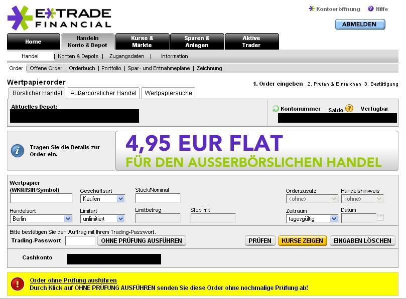 DerDude1980 März 1, 2008 Bin auch sehr zufriedener E*Trade-Kunde. Praktisch nie Handelsausfälle erlebt bisher, läuft einwandfrei und die Gebühren sind die billigsten am Markt, was den Direkthandel betrifft, und generell sehr günstig. Diesen Beitrag teilen Link zum Beitrag