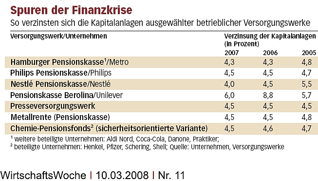 Fleisch März 23, 2008 Schau mal bei Handelsblatt vorbei und schau dir mal die Grafiken und Beiträge zur betrieblichen Altersvorsorge, insbesondere der Vertragsformen und der unterschiedlichen Renditen der einzelnen Pensionskassen /-fonds an Beitrag ist relativ lesenswert und dürfte dir noch einige weitere Infos geben und auch auf Fallstricke hinweisen Diesen Beitrag teilen Link zum Beitrag