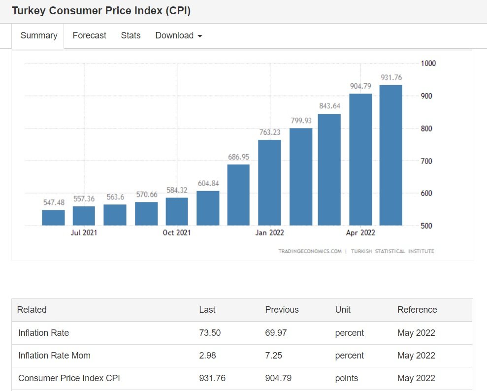 *bewi Juni 7, 2022 Inflationsrate nun bei 73,5 %, da auch ppi kräftig gestiegen ist, keine Entwarnung für die türk. Lira. Diesen Beitrag teilen Link zum Beitrag