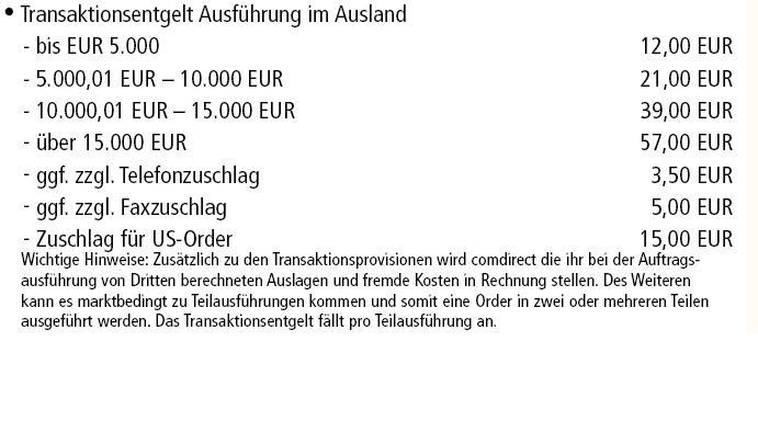desesperado Dezember 19, 2004 · bearbeitet Dezember 19, 2004 von desesperado Transaktionskosten solltet ihr bei dem jeweiligen Broker einsehen, sind also unterschiedlich hoch hier mal als Beispiel die Kosten der comdirect bank AG: Diesen Beitrag teilen Link zum Beitrag