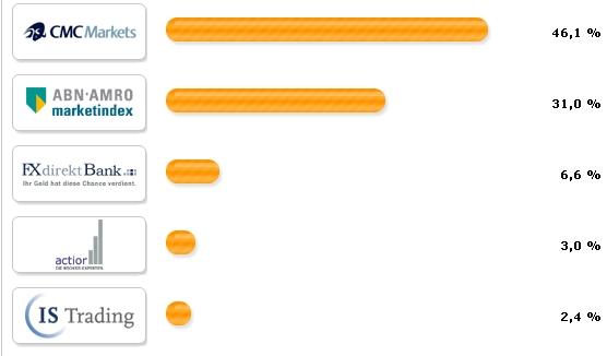 Marktfrau Mai 3, 2008 (mag sich sinnlos anhören, aber schau mal wie der Dax-Future jeden Morgen 7 Uhr abgeht). Grüße Das empfinde ich auch als grausamen Mangel. Bestes Beispiel nach dem 1 Maifeiertag. DA durfte man erst einmal 100 Punkten Sprung hinterher laufen oder dumm zuschauen Du kannst doch einen Thread aufmachen, Handeln mit IG-Markets und dann wird da sicher jemand etwas posten. :snail: edit: ich seh grad, hast du ja schon getan! Mich als ABN-ler wunderts nur, dass in der letzten Brokerwahl CMC vor ABN liegt, und hier in diesem Forum weitaus mehr ABN als CMC-Leute sitzen. Woran liegt das? Läuft bei CMC alles glatt, gibts da keinen Grund, gute und schlechte Trades zu posten, Ärger loszuwerden ? Es liegt an der viel größeren Auswahl an handelbaren CFDs Diesen Beitrag teilen Link zum Beitrag