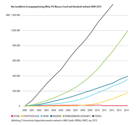 Hier mal Zahlen aus 2014 (wo man auch sieht, dass fossile Kraftwerkskapazitäten im Zubau immer noch dominieren):