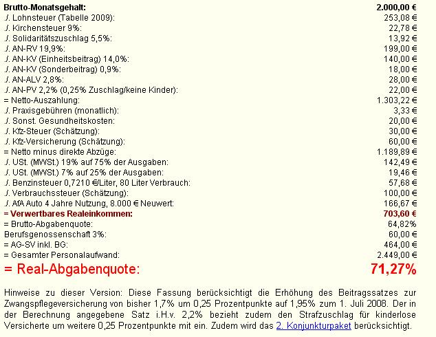 crosplit März 10, 2009 · bearbeitet März 10, 2009 von crosplit Du hast die liebe Berufsgenossenschaft vergessen... http://www.zingel.de/taxes.htm Da gibt es noch mehr Beispiele... Und das Tolle ist: Es reicht trotzdem nicht...der letzte ausgeglichene Haushalt war in den Sechzigern des letzten Jahrtausends... Diesen Beitrag teilen Link zum Beitrag