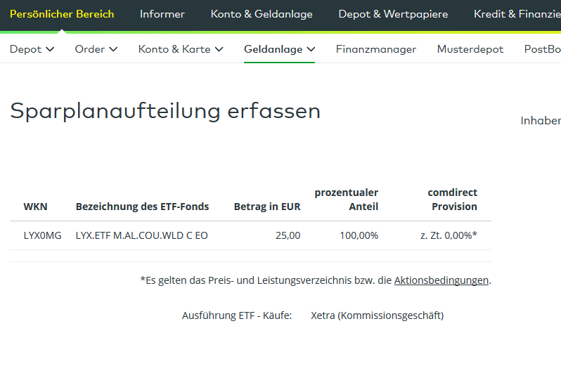 BigDukeSix Januar 1, 2017 · bearbeitet Januar 1, 2017 von BigDukeSix Erstmal ein gesundes neues Jahr allen zusammen. Hoffentlich ist der Kater nicht soo schrecklich. Hab gerade mal so das Aktionsangebot bei der Comdirect durchgeschaut und was sehen da meine entzündeten Augen: Einige Lyxor-ETF sind nun in der Aktion. Mir hat sich nur noch nicht ganz erschlossen, ob die nur in der Einmalanlage oder auch im Sparplan umsonst sind. Aber in der ETF-Ansicht steht nix von Sparplangebühr. Vllt gibt es die Tage noch eine genaue Auflösung. Edit meint: Hab gerade versucht nen Sparplan mit nem Lyxor-Teil anzulegen und da werden tatsächlich 0% Gebühren angezeigt. Diesen Beitrag teilen Link zum Beitrag