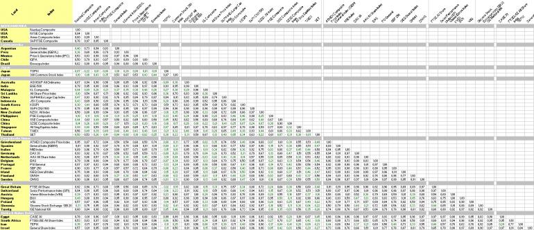supertobs Juni 22, 2008 Hier sind noch mehr Korrealtionen, wenn auch nicht direkt zu ETFs. Quelle ist Portfoliotheorie.com (Korrelationen bei Portfoliotheorie.com)) Meine Korrelationen beziehen sich auch primär auf die Indices. Die Tabelle hat Chris schon in seiner ETF-Übersicht. Da die meisten von uns in Regionen investiert, kommt man damit nicht so recht weiter. Außerdem sind da nur Aktien drin. Wirkliche Probleme machen die RK2 und RK1-Daten. MSCI Barra-Daten (oder allgemein) Länderindices sind einfacher zu bekommen. Nächster Schritt ist für mich nun Feinoptimierung im Bereich RK2 und Small/Value Optimierung. Bin noch an Norberts Tool dran. Diesen Beitrag teilen Link zum Beitrag
