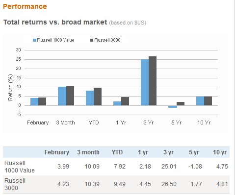 otto03 April 6, 2012 · bearbeitet April 6, 2012 von otto03 Was haltet ihr von dem neuen Lyxor Nordamerika Value ETF auf den Russell 1000 als richtigen Value ETF? Abgesehen davon, dass er noch recht klein ist. Link: http://media.fundinfo.com/pdf/2012/04/04/3038382.pdf/MR_de_DE_FR0011119197_2012-02-29.pdf In den letzten 10 Jahren relativ sinnfrei gegenüber dem Markt (hier dargestellt durch Russell 3000) http://www.russell.com/Indexes/data/fact_sheets/us/Russell_1000_value_Index.asp#performance Übrigens ganz im Gegensatz zu Small Caps, beispielsweise Russell 2000. Diesen Beitrag teilen Link zum Beitrag