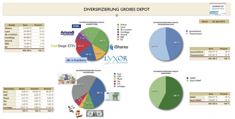 supertobs April 26, 2014 · bearbeitet April 26, 2014 von supertobs Wo kommt diese Grenze her bzw. wofür ist sie gut? "Vor 2009" hatte ich immer zur Sicherstellung der Diversifikation einen absoluten Max-Betrag pro Fonds. Auch bei ETF-Anbietern sollte man nicht alles in einen Korb legen. Wir sehen ja schon einiges an Willkür der ETF-Anbieter in Bezug auf Änderungen SWAP-Nicht SWAP etc. Auch ist ein ETF besser im Tracking als der Zweite. Kann man auch alles so nicht vorher sagen. Natürlich senkt sich das absolute Risiko etwas falsches zu machen oder zu haben. Das Problem tritt im Wesentlichen zuerst in den großen "Core" Märkten auf (z.B. Nordamerika). Beim mittleren Depot noch früher als beim großen. Bisher bei mir noch nicht so relevant, da ich unterschiedliche ETFs "vor 2009" und "nach 2009" habe. "Vor 2009" ist aber alles 100% Aktien und deswegen tritt dieser Effekt nun zuerst in RK1 und RK2 auf. Trade-Off ist natürlich noch mehr unterschiedliche Papiere im Depot zu haben. Entscheidung habe ich noch nicht getroffen. Diskussion zu einer solchen Diversifizierung habe ich im Forum auch noch nicht gesehen. Würde mich aber interessieren: wie seht ihr das: Bei 10% in EM Euro Bonds und hypothetischen 1000k Depot lieber 2 unterschiedliche ETFs a 50 k oder einen ETF mit 100k? Diesen Beitrag teilen Link zum Beitrag