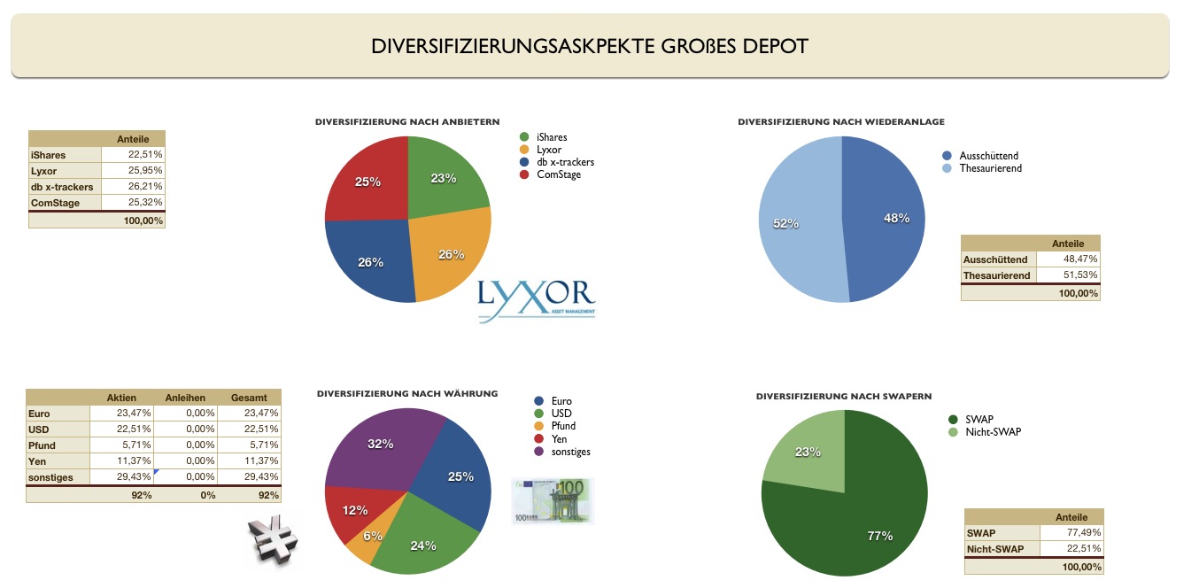 Bertil Dezember 28, 2008 Ansonsten ist mein Depot auch etwas historisch gewachsen. Bei Lyxor EMU Small vs. dbx Europe Small halten sich die Vor- und Nachteile die Waage, so dass ich zugunsten Lyxor nicht mehr umschichte. Wer ganz klar auf Thesaurierung + SWAPs Wert legt ist mit dbx und ComStage sicherlich gut bedient. Das muss wirklich jeder selber entscheiden. Hallo supertobs, auch ich möchte Dir hier ganz herzlich für Deine Arbeit danken, da Du mich auf den richtigen Weg gebracht hast. Bin seit Mitte Dezember nun in Deinem großen Musterdepot investiert. Leider habe ich die letzten 2 Wochen diesen Thread nicht verfolgt und daher die alte Portfolioauswahl umgesetzt ohne ComStage DJ STOXX 600 und dbx MSCI EM. Die Argumentation bzgl. Anbieter-Diversifikation ist mir klar. Jedoch eine Frage bitte: Sind die ausl. Thesaurierer mit ihrem steuerlichen Prozedere nun nicht mehr abschreckend gewesen, oder habe ich etwa verpasst, dass sich dieser Aufwand in Luft aufgelöst hat bzw. wiegen andere Argumente stärker ? Bitte entschuldige falls ich eine Antwort zu dem Thema irgendwo übersehen haben sollte. Umschichten kann ich jetzt zwar eh nicht mehr nur interessieren würds mich halt, da Du diese Thesaurierer bisher auch vermieden hattest. Sorry, bin doch etwas verunsichert, werde aber mit dem Portfolio so leben können denke ich. Besten Dank vorab und alles Gute ab 2009 ! Gruß Bertil Diesen Beitrag teilen Link zum Beitrag
