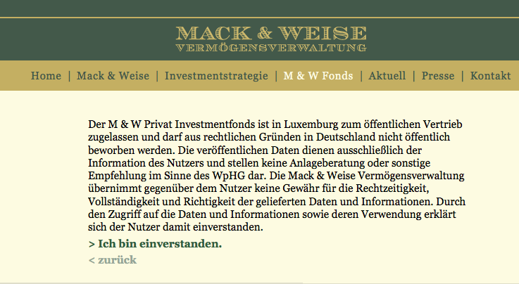 Frankey August 28, 2008 Sehr geehrter Herr, der M & W Privat ist im Rahmen eines Privat Placements aufgelegt worden. Als ein sogenannter Teil-II-Fonds mit dessen Möglichkeit, bis zu 50% seines Fondsvermögens in physische Rohstoffe anlegen zu können, sieht die BaFin keine Möglichkeit der Vertriebszulassung für Deutschland. Somit gilt der Fonds als ein Auslandsfonds mit Vertriebszulassung Luxemburg. Dennoch kann der Fonds vom deutschen Anleger problemlos gezeichnet werden, wenn er über diesen Umstand aufgeklärt wurde. Unter Abgeltungssteueraspekten erfüllt der M & W Privat als ein Publikumsfonds alle Anforderungen, d.h. die Alt-Bestandsschutzregel greift in vollem Umfang, so dass Sie dauerhaft davon profitieren können. Wichtig ist bei der Zeichnung ausländischer Fonds jedoch eines: steuerlich transparent - Ja oder Nein? Wir gewährleisten die steuerliche Transparenz genau wie ein Fonds mit deutscher Vertriebszulassung, so dass spätere plötzliche Zahlungsaufforderungen seitens des Finanzamtes ausgeschlossen sind. Der Orderhinweis der Frankfurter Fondsbank ist daher richtig und notwendig. Wollen Sie den Fonds zeichnen, so muss lediglich dieser Hinweis weggeklickt werden (laut Aussage anderer Anleger) und Sie kommen in die Ordermaske. Gern stehen wir Ihnen für weitere Fragen zur Verfügung und verbleiben mit freundlichen Grüßen Mack & Weise GmbH Vermögensverwaltung Colonnaden 96 20354 Hamburg Was haltet Ihr von der Aussage zur steuerlichen Transparenz des M&W Privat? Hat den Fonds jemand bei der FFB geordert? erhalte dort folgende Meldung: Ziel-Fonds: Achtung! Private Placement! Dieser Fonds kann nur in der individuellen Beratung erworben werden! Diesen Beitrag teilen Link zum Beitrag