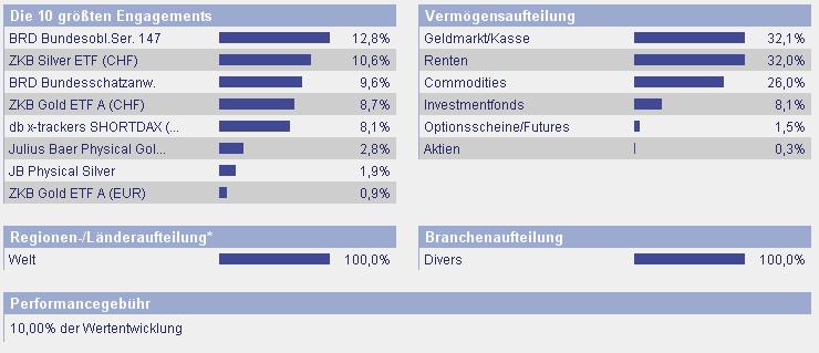 obx Dezember 14, 2010 Aufgezeichnet werden im Factsheet die 10 grössten Positionen und rund 40% ( sorry 36,91 % ) Cash. Dies kann sich stündlich ändern und mit diesem Geld kann und wird höchstwarscheinlich der eine oder andere Put auf Aktien oder Calls auf irgendetwas ge - und verkauft. Mit diesem Anteil kann man auch kurzfristig die Volatilität steuern, zocken oder auf Kaufgelegenheiten warten. Cash, also Kasse in einem Fonds ist für mich eine Black Box. Eine Position in einem Fonds mit der Bezeichnung Kasse, Cash oder Geldmarkt heisst nichts anderes als : wir stehen bei Fuss , wissen aber noch nicht wann.... in was....und wie lange wir einen Teil investieren. Als Anleger bekommt man dies nur im Halbjahresbericht oder im Jahresbericht zu sehen. Da wird zwischendurch mal in Puts auf Daimler und Co gearbeitet oder ähnliches. Das ist aber alles kein Problem. Man darf nur nicht glauben das die angegebene Kasse wirklich ständig gehalten wird. Wenn wir den Factsheeet heute vom 30.11.zu sehen bekommen, dann kann die heutige Aufstellung schon ganz anders aussehen. dank dir, ich werd mal den jahresbericht wenn er verfügbar ist gründlich durcharbeiten. interessiert mich schon wie der teilweise doch so akzeptable ergebnisse erzielen kann, wenn er quasi dem aktienmarkt als teufelszeug abgeschworen hat. Diesen Beitrag teilen Link zum Beitrag