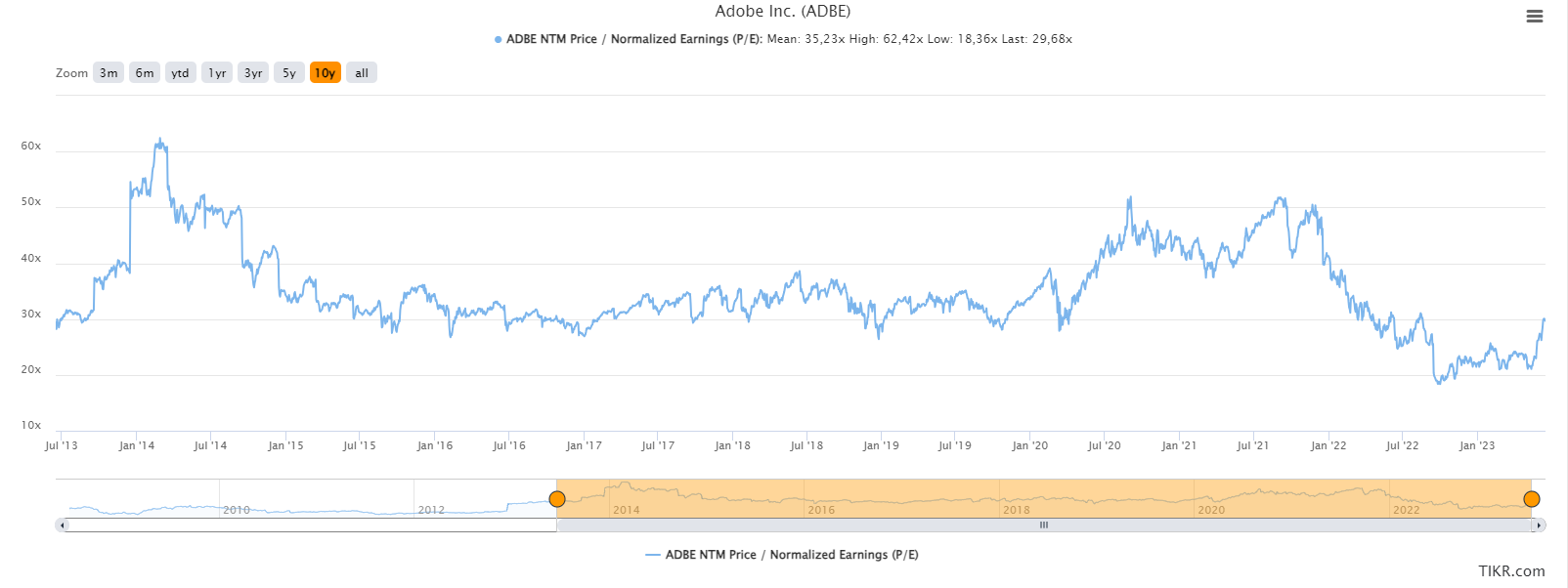 Ich denke auch, dass Adobe momentan fair bewertet ist (gemessen an der eigenen historischen Bewertung)