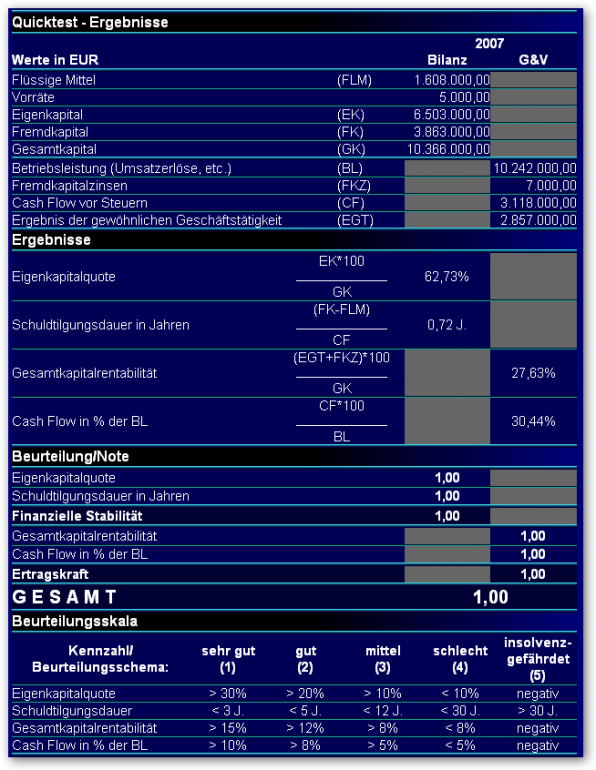 mikelowrey Mai 26, 2008 Hier die grobe Fundamentalanalyse auf Basis des Geschäftsberichts 2007 in Form des Quicktests: Die Eigenkapitalrendite lag bei überdurchschnittlichen 29,5%. Die Bewertung mit einem aktuellen Kurs von 34 : KGV: 21 KUV: 4 KBV: 6,5 Diesen Beitrag teilen Link zum Beitrag