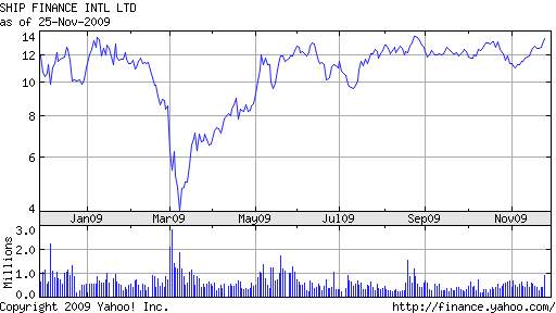 Dagobert2 November 29, 2009 · bearbeitet November 29, 2009 von Dagobert und weiter gehts: 4. Knightsbridge Q3 Highlights - Knightsbridge reports net income of $3.1 million and earnings per share of $0.18 for the third quarter of 2009. - Knightsbridge reports net income of $12.7 million and earnings per share of $0.74 for the nine months ended September 30, 2009. - The first Capesize newbuilding from Daehan, the MV Battersea, was delivered on August 26 and commenced a five year time charter. - The second and final Capesize newbuilding from Daehan, the MV Belgravia, was delivered on October 29 and commenced a five year time charter - Q3 Results - Q3 Präsentation 5. Ship Finance International Q3 Highlights • Declared a quarterly dividend of $0.30 per share. • Reported adjusted net income for the quarter of $36.3 million, or $0.47 per share. Adjustments include a negative non-cash mark-to-market of derivatives of $2.3 million. • Accrued profit share in the third quarter was $4.8 million, or $0.06 per share. Accrued profit share year-to-date is $27.3 million and payable in March 2010. • The charterer of the jack-up drilling rig West Ceres exercised a purchase option in July 2009. Net cash effect to the Company in the third quarter was approximately $40 million after repayment of associated bank debt. • The single-hull VLCC Front Duchess was sold in September 2009. Net cash effect to the Company in the third quarter was approximately $2.5 million after repayment of associated bank debt and a cancellation fee to Frontline. • The charterer of the single-hull VLCC Front Vanadis exercised a purchase option in November 2009. Net cash effect to the Company in the fourth quarter was approximately $1.2 million after repayment of associated debt. • The first newbuilding Suezmax tanker was delivered from the shipyard in November 2009. The vessel, MV Glorycrown, has been chartered out for 5-years with a purchase obligation at the end of the charter period. Dividend Info: quarterly dividend of $0.30 per share. (Yield 9,4%) The dividend will be paid on or about January 27, 2010 to shareholders of record as of December 8, 2009. The ex-dividend date will be December 4, 2009. - Q3 Results - Q3 Präsentation 6. Deep Sea Supply Q3 Highlights • YTD 09 revenues increased and continued strong EBITDA of 60,9%. • Vessels’ operating expenses reduced by 8% compared to YTD September 08. • Q309 revenues and EBITDA reduced compared to Q308 • AHTS “Sea Eagle” acquired at significant discount • Entire shareholding in CH Offshore Ltd, Singapore sold at a profit • Exploring new markets for its fleet; • New shipbuilding contract for construction of large PSV at STX Offshore Brasil S.A. in Brazil • Will provide access to Brazilian market for existing vessels from late 2010 onwards • “Sea Weasel” delivered in 4Q • Renewal of charters is Company’s main challenge • North Sea spot market has deteriorated further • Many new tenders internationally - Q3 Results - Q3 Präsentation 7. ITCL Q3 Highlights - Independent Tankers reports net income of $4.3 million, equivalent to earnings per share of $0.06, for the third quarter of 2009. - Independent Tankers reports net income of $11.4 million, equivalent to earnings per share of $0.15, for the nine months ended September 30, 2009. - The UK tax lease for the VLCC British Progress will be terminated in the first quarter of 2010. ITCL is traded OTC in Norway (no chart) - Q3 Results - Q3 Presentation Infos zu Seadrill finden sich im entsprechenden Thread Diesen Beitrag teilen Link zum Beitrag