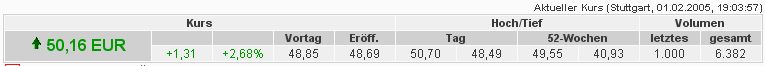 zu erst einmal sind neben dem aktuellen Kurs die Veränderung des Kurses am Tag in Euro und Prozent angegeben.