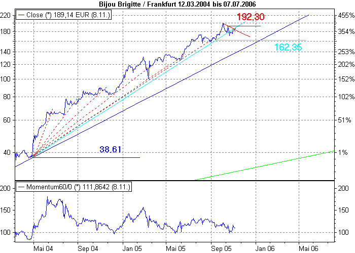 gordong November 15, 2005 Aus meiner Sicht stellt der US-Einstieg schon ein Risiko dar, zumindest für den Kurs. Was für ein Risiko? Lies noch mal nach im Quartalsbericht: "Im ersten Quartal 2006 wird Bijou Brigitte die USA als neuen Markt mit zwei Pilotfilialen testen." Das zahlen die aus der Portokasse. Diesen Beitrag teilen Link zum Beitrag