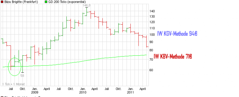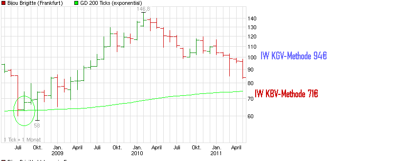 Plutos März 21, 2011 Der Gewinn 2010 wird wahrscheinlich um 20-30% niedriger ausfallen, charttechnisch sieht es auch übel aus, das war Anfang letzten Jahres auch noch anders. Wo soll da die Phantasie herkommen. Der Börse ist es egal ob die Läden abbrennen oder nicht, siehe 2008 da hat man sogar noch Filialen eröffnet was die Ertragslage etwas stabilisiert hat, der Aktie hat es nichts genutzt. Im Tiefpunkt gab es 11% Dividendenrendite. Da sind auch schon die erwartet schwachen Zahlen ... "Geschäftsjahr 2010: Konzernüberschuss beträgt 58,3 Mio. EUR / Stabile Dividende: Vorschlag zur Ausschüttung von 6,50 EUR je Stückaktie Hamburg, 21. März 2011 Der Bijou Brigitte-Konzern erzielte im abgelaufenen Geschäftsjahr ein Konzernergebnis vor Steuern in Höhe von 84,7 Mio. EUR nach 108,9 Mio. EUR im Geschäftsjahr 2009. Der Konzernüberschuss nach Steuern betrug 58,3 Mio. EUR und lag damit 17,1 Mio. EUR unter dem vergleichbaren Vorjahreswert (75,4 Mio. EUR). Der rückläufige Umsatz vor allem in Südeuropa hat die Ergebnisentwicklung maßgeblich geprägt. Im Geschäftsjahr 2010 belief sich der Konzernumsatz auf 377,9 Mio. EUR nach 390,1 Mio. EUR im Vorjahr (-3,1 %); flächenbereinigt ging der Umsatz im Vorjahresvergleich um 7,2 % zurück. Die Zahl der Filialen erhöhte sich im Rahmen der fortgeführten Expansion von 1.125 auf 1.167 Geschäfte. Vorstand und Aufsichtsrat schlagen vor, eine Dividende in Höhe von 6,50 EUR je Stückaktie auszuschütten und somit das Dividendenniveau der vergangenen vier Jahre stabil zu halten. Der Vorschlag wird unter dem Vorbehalt der Verifizierung des Konzernergebnisses durch die Wirtschaftsprüfungsgesellschaft der Hauptversammlung am 7. Juli 2011 unterbreitet. Für das erste Quartal 2011 wird eine Fortsetzung des Umsatztrends erwartet, insbesondere aufgrund der anhaltend rückläufigen Geschäftsentwicklung in Spanien und Portugal. Der Vorstand wird auf der Bilanzpressekonferenz am 28. April 2011 detaillierte Informationen zum Konzernabschluss 2010 präsentieren. " Da es keine Überraschung ist reagiert der Kurs auch kaum. Diesen Beitrag teilen Link zum Beitrag
