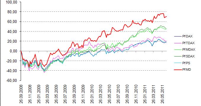 Wave XXL Mai 21, 2011 Diese Woche war wenig spektakulär. Während INIT Kursgewinne verzeichnen konnte und von einem Hoch zum nächsten eilt, wurden diese Gewinne durch die LPKF-Kursverluste wieder ausgeglichen. Immerhin haben fast alle anderen Vergleichsindices verloren, sodass unter dem Strich wieder Alpha generiert werden konnte Diesen Beitrag teilen Link zum Beitrag