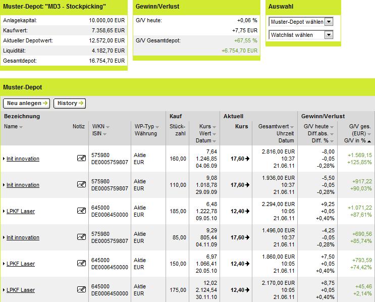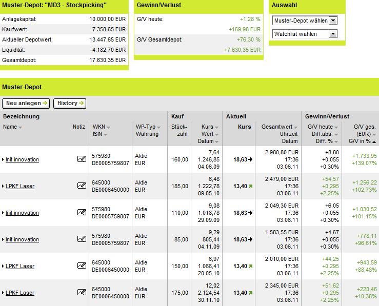 Wave XXL Juni 25, 2011 Diese Woche war eine gute Woche - das Depot konnte gegen den Trend gut einen Prozentpunkt zulegen. Während INIT leicht abgeben musste, konnte LPKF einen kleinen Rebound hinlegen. Diesen Beitrag teilen Link zum Beitrag