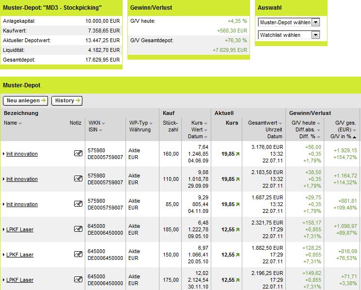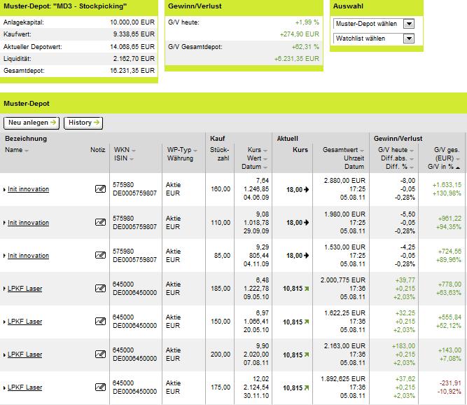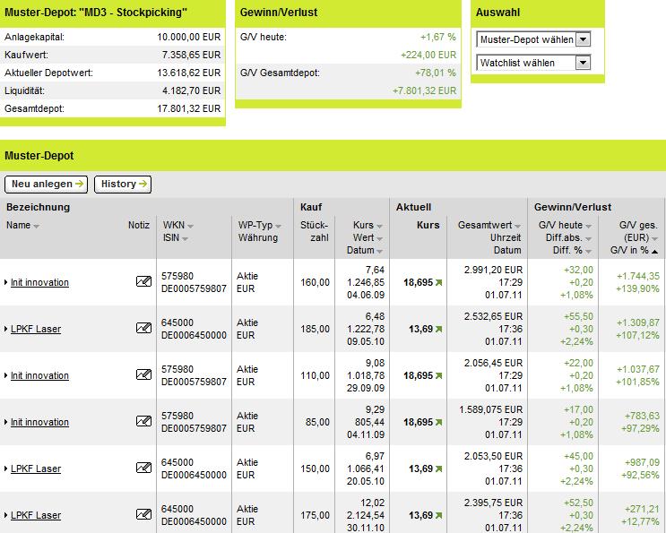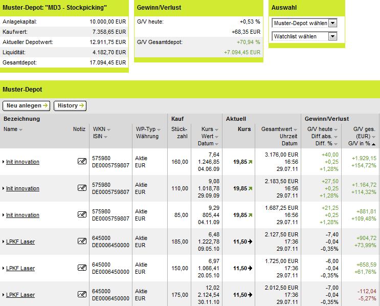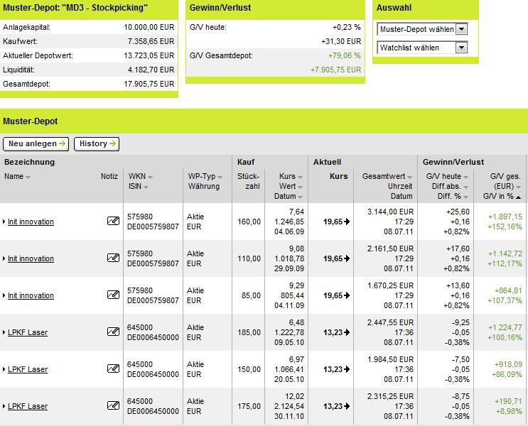 Wave XXL Juli 3, 2011 Sehr gute Woche für das Depot. Sowohl INIT, als auch LPKF konnte stark zulegen und somit das Depot um 8 Prozentpunkte emporhieven. Diesen Beitrag teilen Link zum Beitrag