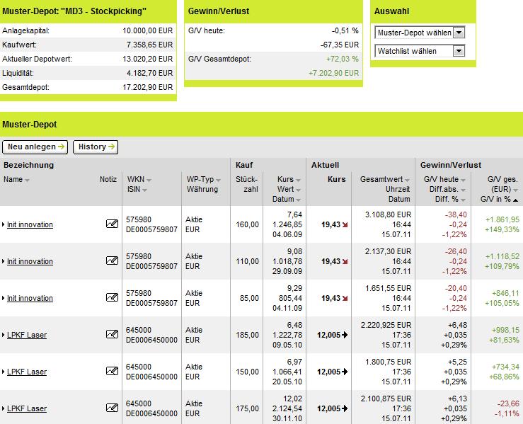 Wave XXL Juli 10, 2011 Dank der sehr guten Performance von INIT konnte die Schwäche von LPKF ausgeglichen werden und das Depot ca. einen Prozentpunkt im Plus notieren. Die anderen Indizes stagnierten, einzig der SDAX konnte seine unvermindert starke Performance weiter fortsetzen. Diesen Beitrag teilen Link zum Beitrag