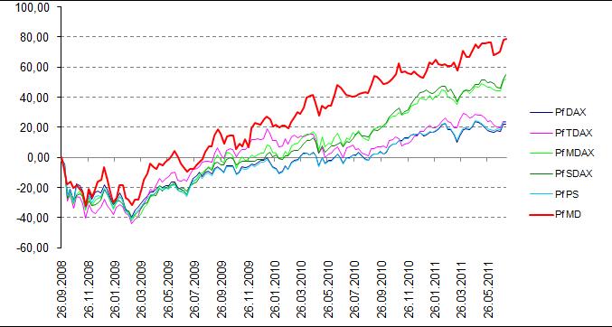 Wave XXL Juli 4, 2011 Hi Juro, ist halt Ansichtssache. Wenn es darum geht, das Depot als möglichst reales Depot zu führen, bestehen nun einmal Abhängigkeiten von der Basis --> Prozentpunkte. Wenn ich wissen will, ob meine Aktien Woche für Woche den Markt schlagen, dann muss ich dies natürlich mit Prozenten machen. Da es für mich einfacher ist, die Prozentpunkte abzulesen bleibe ich bei ersterem. Ich veröffentliche Jahr für Jahr die Daten zur Performance und Vola, von daher kann man sich ja dann ein Bild machen, ob die Strategie funktioniert oder nicht. Und wer ein Zwischenergebnis möchte, der muss nur zum Taschenrechner greifen - ich veröffentliche ja alle relevanten Daten Diesen Beitrag teilen Link zum Beitrag