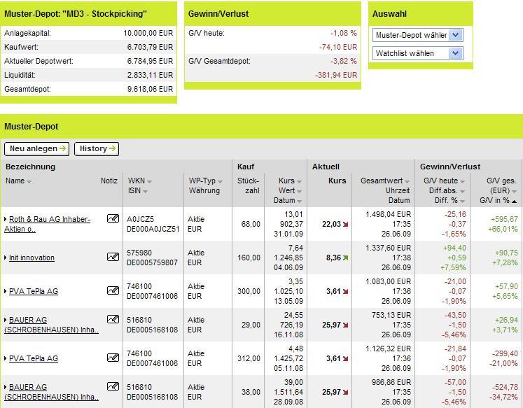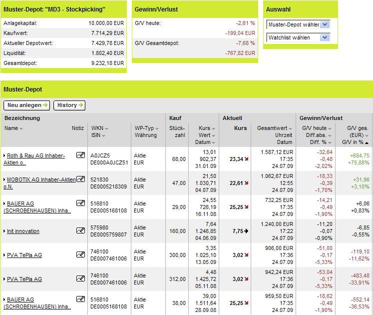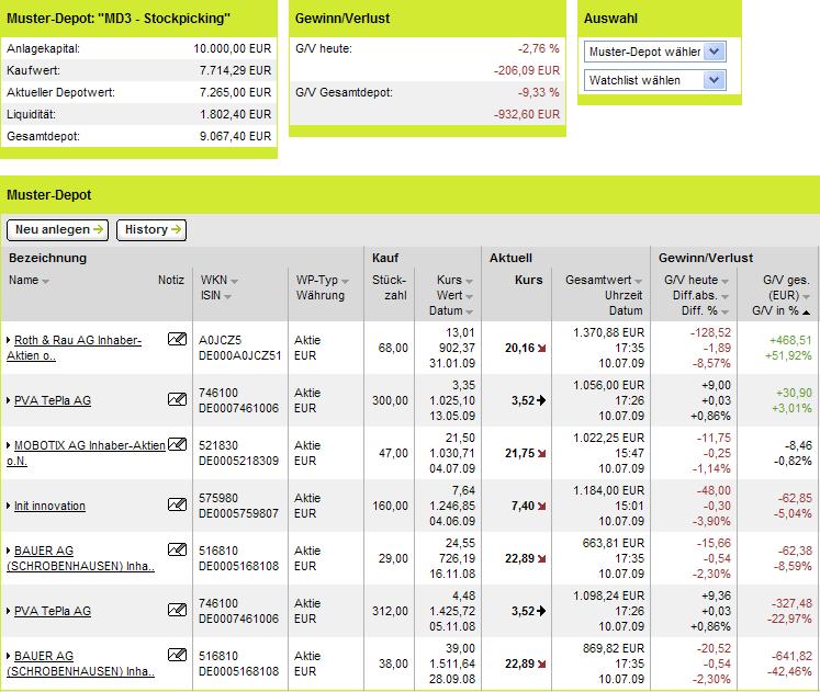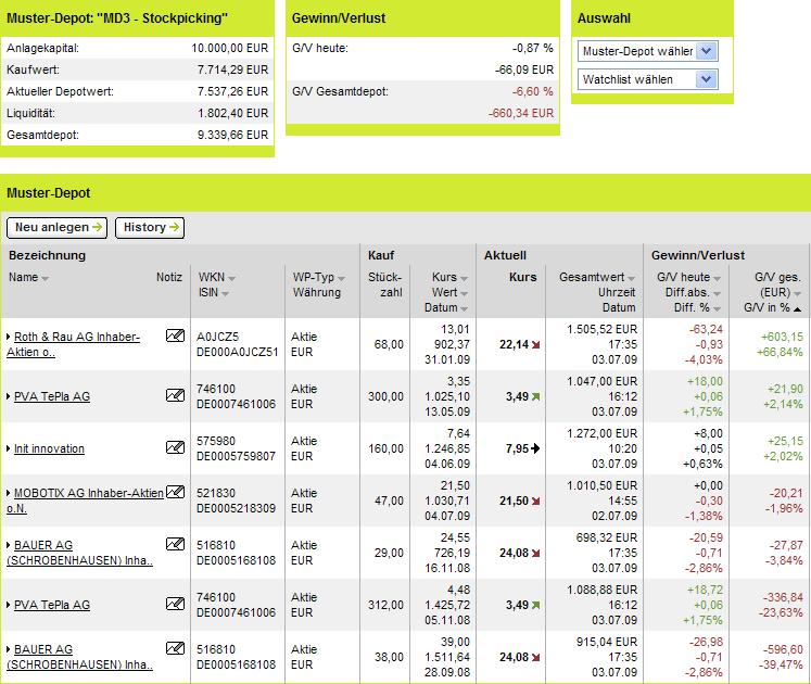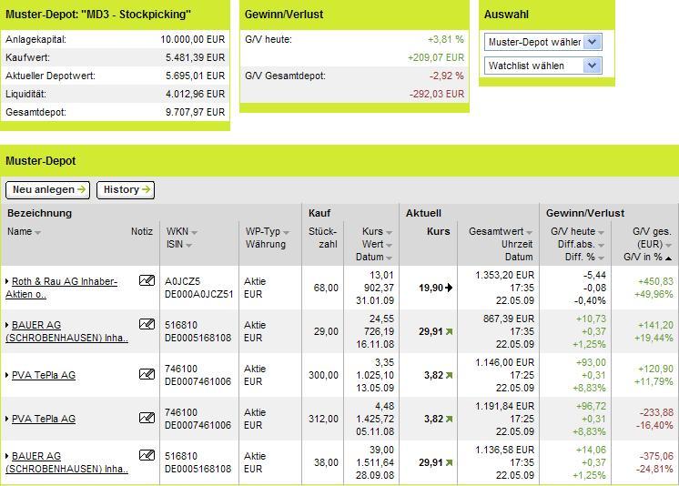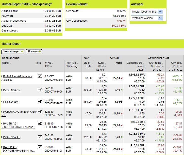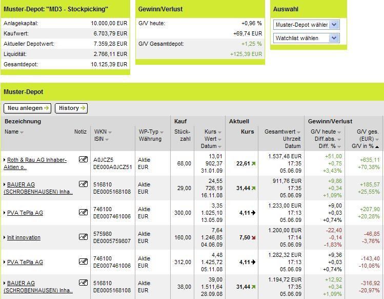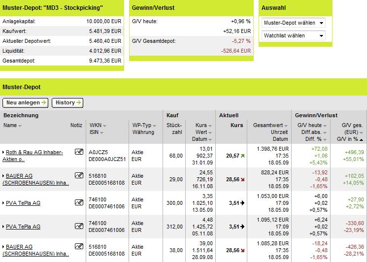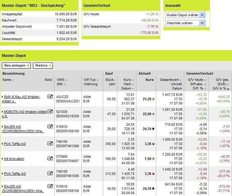 Wave XXL Juli 23, 2009 Zumal du ja auf ein halbes Jahr schon vorne liegst, und du hast ja mehr nach fundamentalen Daten ausgewählt, so dass da gute Chancen bestehen, auch weiterhin vor den Indices zu liegen. Schönes Musterdepot! Danke schön Und der TecDax alleine ist ja nicht dein Vergleichindex.Evtl. könntest du ja je nach Ausrichtung und Gewichtung deiner Aktien einen "richtigen" Vergleichsindex erstellen. werde ich die Tage mal angehen Diesen Beitrag teilen Link zum Beitrag