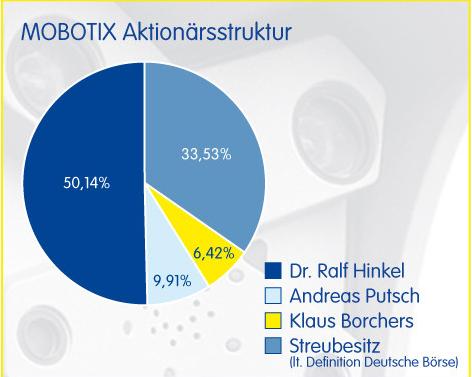 Wave XXL Juli 4, 2009 Und wieder eine schlechte Woche - und wieder waren es Bauer und PVA Tepla, die das Depot runtergezogen haben....beide sind mittlerweile bei einem sehr sehr günstigen Niveau angekommen, ich bin gespannt, wie lange es dauert, bis sie wieder stark nach oben laufen Ich hab wieder einen Titel in das Depot aufgenommen, es handelt sich um Mobotix, einem Produzenten von Netzwerkkameras, ausführlichere Betrachtung unterhalb des Updates. Kauf Mobotix 47 Stück = ca 1000 Euro Mobotix: Kurzprofil: Die MOBOTIX AG ist ein technologisch führender Systemanbieter von digitalen hochauflösenden netzwerkbasierten Video-Sicherheitssystemen. Das Kaiserslauterer Unternehmen wurde im Jahr 1999 als Aktiengesellschaft gegründet und vertreibt seine Lösungen weltweit über Distributoren und qualifizierte Vertriebspartner in über 70 Ländern. Die MOBOTIX AG verfügt zurzeit über rund 200 Mitarbeiter und erzielte im Geschäftsjahr zum 30. Juni 2008 einen Umsatz von rund 35,3 Millionen Euro. Das entspricht einem Wachstum von rund 50 Prozent im Vergleich zum Vorjahr. Gleichzeitig konnte die EBIT-Marge auf 19 Prozent ausgeweitet werden. Die Exportquote betrug über 62 Prozent. Die MOBOTIX-Kamerasysteme nutzen die digitale Datenübertragung über Computer-Netzwerke und sind nicht an die geringen Bildauflösungen von 0,4 Megapixel des alten analogen Videostandards gebunden. Bei der von MOBOTIX entwickelten dezentralen Systemarchitektur findet die Auswertung nicht in einem zentralen PC, sondern in den Kameras selbst statt. Sie detektieren so eigenständig Bewegungen im Bild, speichern diese in einer Datenbank und signalisieren das Ereignis via Email oder VoIP-Telefonanrufe. Diese dezentrale Struktur entlastet das Netzwerk und das zentrale Videomanagement, ermöglicht höhere Bildraten und reduziert bei der Aufzeichnung von hochauflösenden Videosequenzen die Anzahl der Speichersysteme um ein Vielfaches. Die Video-Sicherheitssysteme von MOBOTIX eignen sich aufgrund der kostengünstigen dezentralen Architektur für sehr unterschiedliche Anwendungen, von Kleinstanlagen mit einigen Kameras via Internet bis zu großen Objektüberwachungen mit hunderten von Kameras und zentralen Leitständen. Anwendungsbeispiele finden sich in Flughäfen, Bahnhöfen, Universitäten, Logistikunternehmen, aber auch die Industrie zur Fernwartung und Automation. Weltweit sind bereits 100.000 MOBOTIX-Kameras im Einsatz. In diesem Kurzprofil sind schon einige Punkte angesprochen, die die Firma so interessant machen: -Hohes Wachstum bei gleichzeitig hohen Margen -Technologieführerschaft -Stark wachsender Markt -Kostenvorteile gegenüber Konkurrenten -Saubere Bilanz Mehrere Marktforschungsinstitute sehen für die kommenden Jahre ein Wachstum des Marktes für Netzwerkkameras von 30-40% jährlich! Mobotix ist bei den Netzwerkkameras die Nr. 4 auf der Welt mit 7,4% Marktanteil (Tendenz stark steigend) und die Nr. 2 in Europa. Bei den Megapixelkameras sind sie mit 60% Marktanteil Weltmarktführer. Mobotix-Kameras liefern Bilder mit 3,1 Megapixel, dh man kann 30mal mehr erkennen, also auf den Bildern üblicher analoger Kameras. Dazu haben die Mobotix-Kameras noch weitere Vorteile, gegenüber den analogen Kameras, die derzeit noch 90% des Gesamtmarktes ausmachen: - weniger Kameras nötig, da die Kameras über entsprechende Weitwinkelobjektive verfügen (eine Mobotix-Kamera kann vier Tankstellenspuren überwachen) - keine PCs nötig zur Überwachung - Videos werden in der Kamera verarbeitet und auf SD-Karten gespeichert - wenig Wartung - dadurch, dass die Kameras keine Motoren zur Bewegung haben, sind sie auch weniger anfällig für technische Probleme ; außerdem sind sie extrem witterungs- und temperaturrobust, zB werden sie auch in der Antarktis-Station eingesetzt - kostenlose Software: Die Software für die Kameras wird kostenlos mitgeliefert, dadurch wird reinen Softwareanbietern, wie es sie auf dem Markt ebenfalls gibt, die Grundlage für ihr Geschäft genommen Mobotix hat also Produkte auf dem Markt, mit denen sie ihren Konkurrenten überlegen sind und noch mehrere in der Pipeline, mit welchen neue Geschäftsfelder erschlossen werden sollen, vor allem das Private Security Segment. Von der Qualität der Mobotix-Produkte kann man nicht nur auf deren Homepage lesen, sondern auch auf vielen Internetportalen und in Zeitschriften zB Computerbild usw, wo die Kameras getestet wurden und immer sehr gut abgeschnitten haben. Die Mobotix-Kameras sind auch schon weltweit im Einsatz, auf der Homepage kann man die Erfahrungsberichte der einzelnen Kunden lesen, zB von der Commerzbank, MAN Logistics, Daimler, Panama Ports, Fußball-Stadion in Kaiserslauten usw.....an dieser Auflistung sieht man auch schon, dass Überwachungskameras überall eingesetzt werden, sowohl in der Industrie als auch im öffentlichen Leben. Weil immer mehr automatisiert wird und dadurch mehr Kameras benötigt werden, glaube ich dass der Markt allgemein ein großes Wachstum verzeichnen wird. Ebenso wird die Kriminalität nicht gerade zurückgehen und der Private-Security-Sektor wird auch stark wachsen. Dazu kommen dann noch staatliche Eingriffe, wie zB das französische Videogesetz, das eine Verbesserung der öffentlichen Überwachung vorsieht. Dazu kommt dann noch der oben angesprochene Vorteil der Netzwerkkameras, besonders der Megapixel-Kameras, welche nach und nach die analogen Kameras ersetzen sollten - dh es dürfte, wie es auch die Marktforschungsinstitute sehen, ein sehr starkes Wachstum im Geschäftsfeld von Mobotix geben. Mobotix ist erst im Oktober 2007 an die Börse gegangen, erst waren sie im Entry Standard gelistet, sind dann aber früh in den Prime Standard gewechselt. Die Aktionärsstruktur stellt sich folgendermaßen dar: Über 50% hält der Gründer der Firma Dr. Ralf Hinkel. Ich hab mich mal auf ein paar Websites über ihn informiert und er hat schon mehrere Forschungspreise gewonnen und seine Promotion mit summe cum laude abgeschlossen. Vor der G