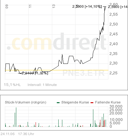 sophomore November 6, 2006 auf der plambeck website steht die Veröffentlichung ist am 6. Novemberhier Und die Quartalszahlen bringen -20%. Ein sattes Minus beim Ebit und eine geplante Kapitalerhöhungen treffen nicht unbedingt den Nerv der Anleger. Beste Grüße, Sophomore 06.11.2006 16:13Plambeck patzt erneut So schnell kann sich der Wind drehen: Im Sommer hatte es noch nach einem Comeback von Plambeck ausgesehen. Nun ist der Windpark-Betreiber wieder in die roten Zahlen geschlittert. Schuld sind Projektverschiebungen. Bild zum Artikel Das Cuxhavener Unternehmen gab am Montagmorgen einen Verlust vor Zinsen und Steuern (Ebit) in Höhe von 3,5 Millionen Euro für die ersten neun Monate bekannt. Dabei hatte es noch im ersten Halbjahr 2006 einen operativen Gewinn von drei Millionen Euro gegeben. Warten auf Genehmigungen Als Grund für die Rückkehr in die Verlustzone nannte Plambeck verzögerte Genehmigungen für den Bau von Windparks. Umsatz und Gewinn aus den Projekten hätten daher noch nicht im dritten Quartal verbucht werden können. Für rund ein Dutzend Windenergieanlagen warten die Cuxhavener auf die notwendige Genehmigung. Dritte Kapitalerhöhung binnen eines Jahres Mit einer erneuten Kapitalerhöhung will sich Plambeck frisches Geld in die Kassen holen und Kredite ablösen. Bis zu 12,4 Millionen neue Aktien sollen ausgegeben werden. Der Preis steht noch nicht fest. Bereits im Dezember 2005 und im Frühjahr 2006 hatte Plambeck Kapitalerhöhungen durchgeführt. Wende im vierten Quartal? Trotz des katastrophalen dritten Quartals zeigte sich Plambeck optimistisch, in diesem Jahr in der Gewinnzone zu bleiben. Anlass zur Hoffnung gibt die Tatsache, dass die Cuxhavener im Oktober zwei der vier Baugenehmigungen für die Errichtung von zehn Windkraftanlagen erhalten haben. Dabei sollte eigentlich der Großauftrag von 30 Windparks für den in Australien börsennotierten Investmentfonds Babcock & Brown Wind Partners Umsatz und Liquidität von Plambeck sichern. Das Geschäft hat ein Volumen von 400 Millionen Euro. Die Windparks mit rund 180 Windenergieanlagen mit einer Gesamtleistung von mehr als 300 Megawatt sollen bis 2008 in Niedersachsen, Nordrhein-Westfalen und Brandenburg entstehen. Knapp der Insolvenz entronnen Das Cuxhavener Unternehmen war 2004 in finanzielle Schwierigkeiten geraten und konnte 2005 nur durch Kapitalmaßnahmen und Bankenhilfe die Insolvenz verhindern. 2004 war ein Fehlbetrag von 142 Millionen Euro entstanden. 2005 konnte der Verlust auf 2,7 Millionen Euro begrenzt werden. Die Börsianer trauen den Versprechungen nicht. Sie strafen am Montag massiv die Aktie für die schwachen Quartalszahlen ab. Der Wind-Titel bricht um über 20 Prozent auf 2,37 Euro ein. Noch Anfang Juni hatte das Papier bei vier Euro notiert. Diesen Beitrag teilen Link zum Beitrag