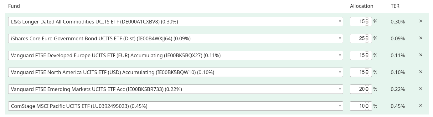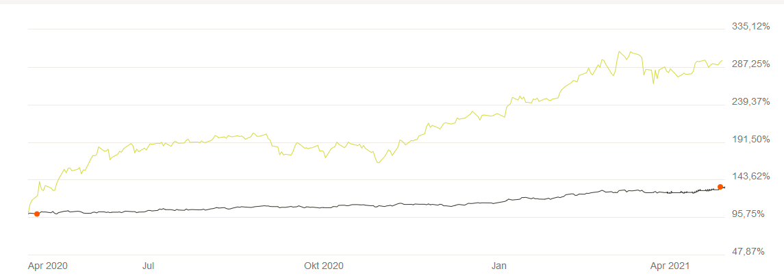 stagflation Mai 6, 2021 · bearbeitet Mai 6, 2021 von stagflation Auf https://backtest.curvo.eu/ kann man Portfolios relativ einfach durchrechnen lassen. Wir könnten mal schauen, was wir dort über den ARERO Weltfonds herausfinden können! Okay, probieren wir es aus! Der ARERO Weltfonds verwendet folgende Indexe (Quelle: https://www.arero.de/wissenschaftlich) : Aktien (60%): Solactive GBS North America Large & Mid Cap USD Index TR, Solactive GBS Developed Market Europe Large & Mid Cap EUR Index TR, Solactive GBS Developed Market Pacific Large & Mid Cap USD Index TR, Solactive GBS Emerging Markets Large & Mid Cap USD Index NTR Renten (25%): Solactive EuroZONE Government Bond Index TR Rohstoffe (15%): Bloomberg Commodity Index Total Return 3 Month Forward Auf Backtest simuliere ich den ARERO Weltfonds mit folgenden ETFs, wobei ich mich an diesem Vorschlag bei JustETF und an diesem Dokument orientiere: Diese Zusammenstellung kann man sicherlich noch verbessern. Wenn jemand eine bessere Zusammenstellung austüftelt: bitte posten, das interessiert mich! Der von Backtest berechnete Kursverlauf über die letzten 10 Jahre und die Wertentwicklung in den einzelnen Jahren stimmen jedenfalls recht gut mit den von DWS veröffentlichten Daten überein. Nicht perfekt, aber ausreichend gut! Schauen wir uns die Efficiency Frontier (EF) Analyse an mit den Daten der letzten 10 Jahre an: Der blaue Punkt ist der ARERO Weltfonds. Zu den Punkten auf der schwarzen Linie (und insbesondere zu den grünen, gelben und roten Punkten) kommt man, indem man die Anteile der einzelnen ETFs optimiert. Das Programm gibt für den gelben Punkt (maximum sharpe ratio) beispielsweise aus: 0% L&G Longer Dated All Commodities UCITS ETF 65% iShares Core Euro Government Bond UCITS ETF (Dist) 20% Vanguard FTSE Developed Europe UCITS ETF (EUR) 15% Vanguard FTSE North America UCITS ETF (USD) 0% Vanguard FTSE Emerging Markets UCITS ETF 0% ComStage MSCI Pacific UCITS ETF Den Punkt direkt oberhalb vom blauen Punkt (gleiches Risiko, aber 4% mehr Rendite) hätte man durch folgende Mischung erreicht: 5% L&G Longer Dated All Commodities UCITS ETF 30% iShares Core Euro Government Bond UCITS ETF 5% Vanguard FTSE Developed Europe UCITS ETF (EUR) 40% Vanguard FTSE North America UCITS ETF (USD) 5% Vanguard FTSE Emerging Markets UCITS ETF 15% ComStage MSCI Pacific UCITS ETF Fragt Ihr Euch, warum der blaue Punkt nicht auf der EF Linie liegt? Nun, für Daten in der Vergangenheit ist es einfach zu sagen, wie man hätte mischen müssen, um auf die EF Linie zu kommen. Für die Zukunft ist die Entwicklung der Anlageklassen jedoch nicht vorhersehbar. Deshalb kann kein Fonds-Manager so mischen, dass sein Fonds sicher auf der EF Linie landet. Da @Madame_Q (und einige andere) kürzlich schrieben, dass Rohstoffe letztes Jahr besser gelaufen seien: betrachten wir die EF Analyse für das letzte Jahr: Das Diagramm sieht schon ganz anders aus. Zum gelben Punkt (gleiches Risiko, 4% mehr Rendite) wäre man im letzten Jahr durch folgende Mischung gekommen: 100% L&G Longer Dated All Commodities UCITS ETF 0% iShares Core Euro Government Bond UCITS ETF 0% Vanguard FTSE Developed Europe UCITS ETF (EUR) 0% Vanguard FTSE North America UCITS ETF (USD) 0% Vanguard FTSE Emerging Markets UCITS ETF 0% ComStage MSCI Pacific UCITS ETF Also tatsächlich: Rohstoffe waren letztes Jahr der Renner! Mein Fazit: Backtest ist ein wunderbares Tool. Probiert es aus und spielt damit! In den Jahren bis 2020 waren die Rohstoffe eher ein Klotz am Bein. Aber im letzten jahr haben sie offenbar positiv zur Entwicklung des Fonds beigetragen. Diesen Beitrag teilen Link zum Beitrag