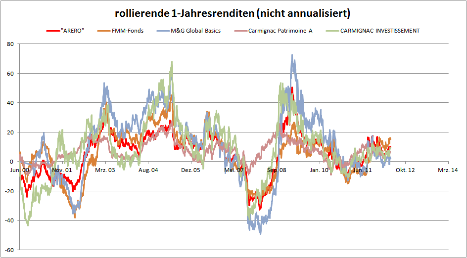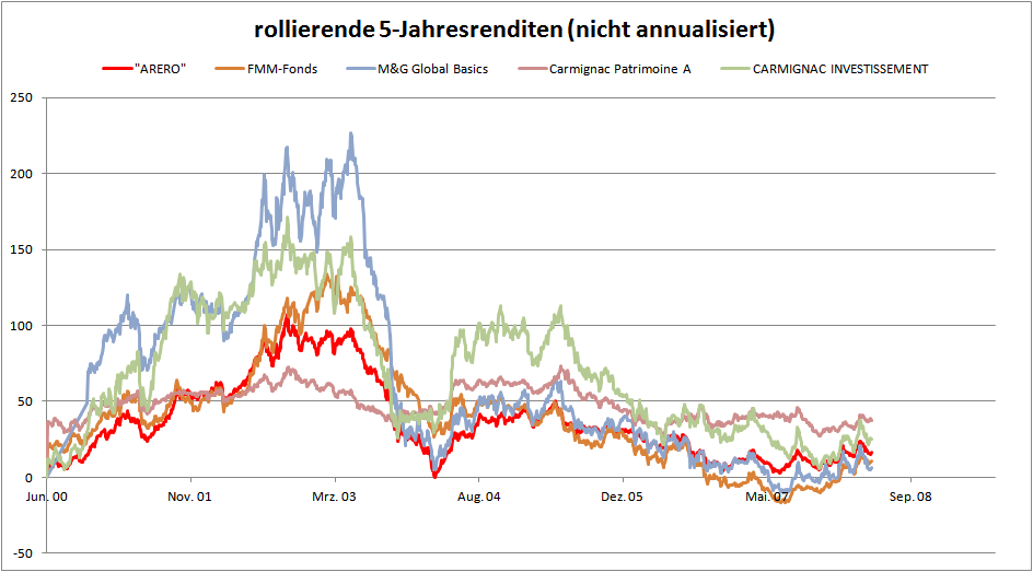 Die rollierenden 1-sowie 5-Jahresrenditen des "Areros" sind der Übersicht halber noch einmal separat aufgeführt.