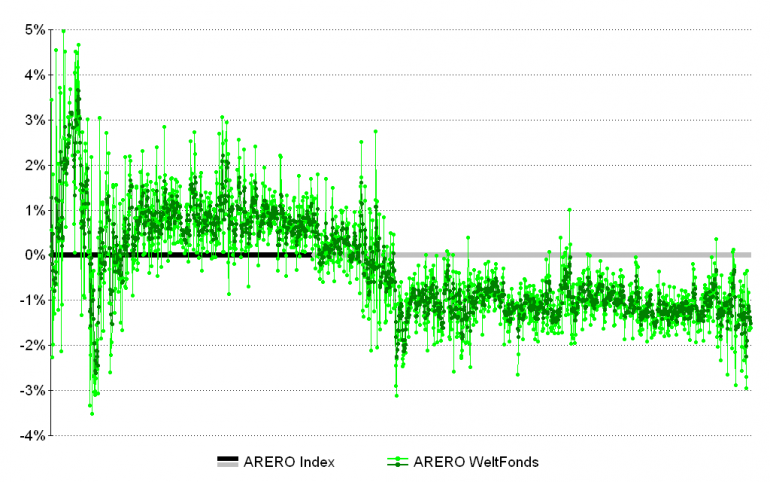 abseits Februar 11, 2015 · bearbeitet Februar 11, 2015 von abseits Nach meinen Berechnungen ergibt sich ... Die ARERO WeltFonds Preise vergleichen sich am besten mit dem "End of Day" des Vortages. @etherial: Diese Erkenntnis darf man nicht ignorieren. Vergleich mit dem "End of Day" des jeweiligen Vortages (Methode von abseits) : Vergleich mit dem "End of Day" des jeweiligen Tages (Methode von etherial) : Ein starkes Rauschen stört alle Berechnungen nach der Methode von etherial. Auch bei meiner Methode könnte noch ein geringes Rauschen vorhanden sein. Aussagen zum "tacking error" (= Schwankungen der "tracking difference") sind daher problematisch. Diesen Beitrag teilen Link zum Beitrag