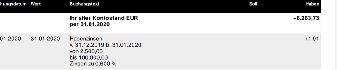 Theobuy Juni 3, 2023 vor 4 Stunden von Tharos: Gering - nur der eine Cent bekommt Zins. Hier Mal ein alter Screen eines varengold Auszugs - kannst ja selber rechnen was verzinst wurde. Danke! Diesen Beitrag teilen Link zum Beitrag