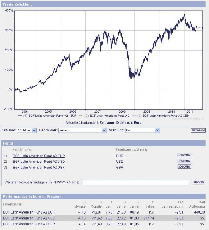 hugolee September 24, 2009 · bearbeitet September 24, 2009 von hugolee Hallo Leute, ich habe den Fond LATIN AMERICAN FUND A2 US - LU0072463663 in meinem Depot. Ist noch ein Bestand vor 2009, also AbgSt-FREI. Jetzt würde ich diesen Fond gerne wieder besparen. Der vorhandene Fond im Depot ist in USD. Macht es Sinn die EURO-Version - LU0171289498 jetzt zu besparen? Welche Vorteile Nachteile hätte ich? Das gleiche überlege ich mir für den Fond BGF - World Mining USD - LU0075056555 und die Version BGF - World Mining EUR - LU0172157280 DANKE hugolee Diesen Beitrag teilen Link zum Beitrag
