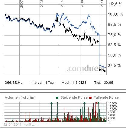 Tenzing Norgay Mai 14, 2011 Auf den ersten Blick sieht es aus, als wäre der Bewertungsabschlag für geschlossene OIs nicht besonders groß. Nur, wenn man davon ausgeht, dass die REITs 2008 nicht überbewertet waren. Würde man im Chart die Überbewertung berücksichtigen, den REIT-Chart also meinetwegen bei 150% starten lassen, dann sähe der Vergleich schon anders aus. Diesen Beitrag teilen Link zum Beitrag