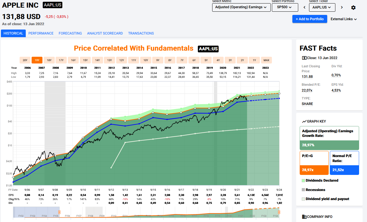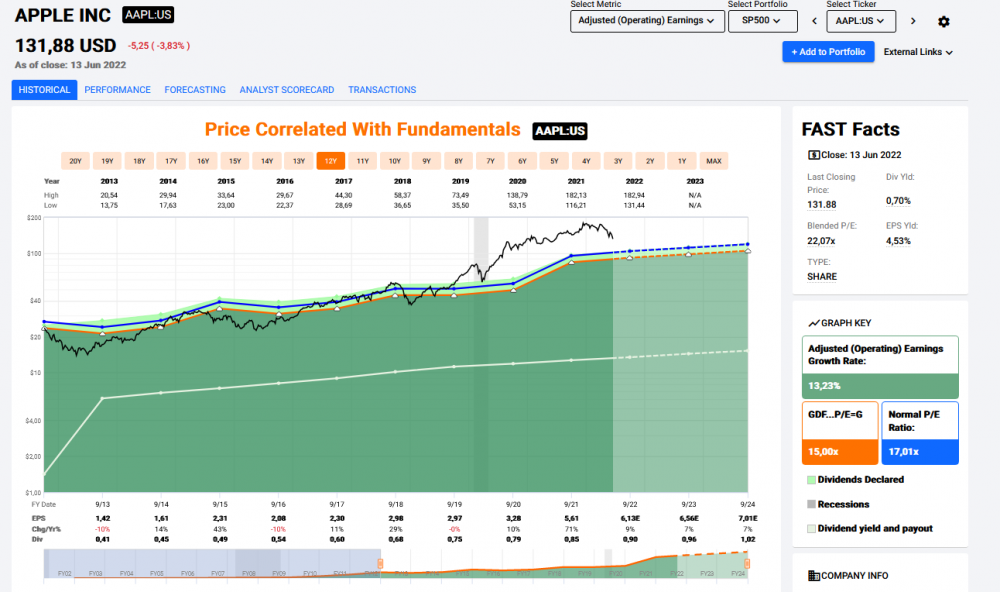 Toni Juni 14, 2022 vor 52 Minuten von Kai_Eric: Tut mir leid, aber diese Aussage finde ich ein wenig abstrus. Es ist doch genau zu erkennen, dass die Unternehmensbewertung in den letzten 2-3 Jahren (und auch aktuell) so hoch ist, wie seit 2009 nicht mehr. Die Erwartung an die EPS-Steigerungen in den kommenden Jahren wird nur noch mit 9, 7 und 7% ausgewiesen. Werte, die schwerlich ein KGV von 23 rechtfertigen. Weder das Eine noch das Andere sprechen für eine Unterbewertung. De facto ist Apple weiterhin vergleichsweise hoch bewertet und das bei einer vergleichsweise geringen Erwartung an das künftige Wachstum der Unternehmenszahlen. Da magst Du recht haben. Ich habe nur FASTgraphs zitiert. Diesen Beitrag teilen Link zum Beitrag