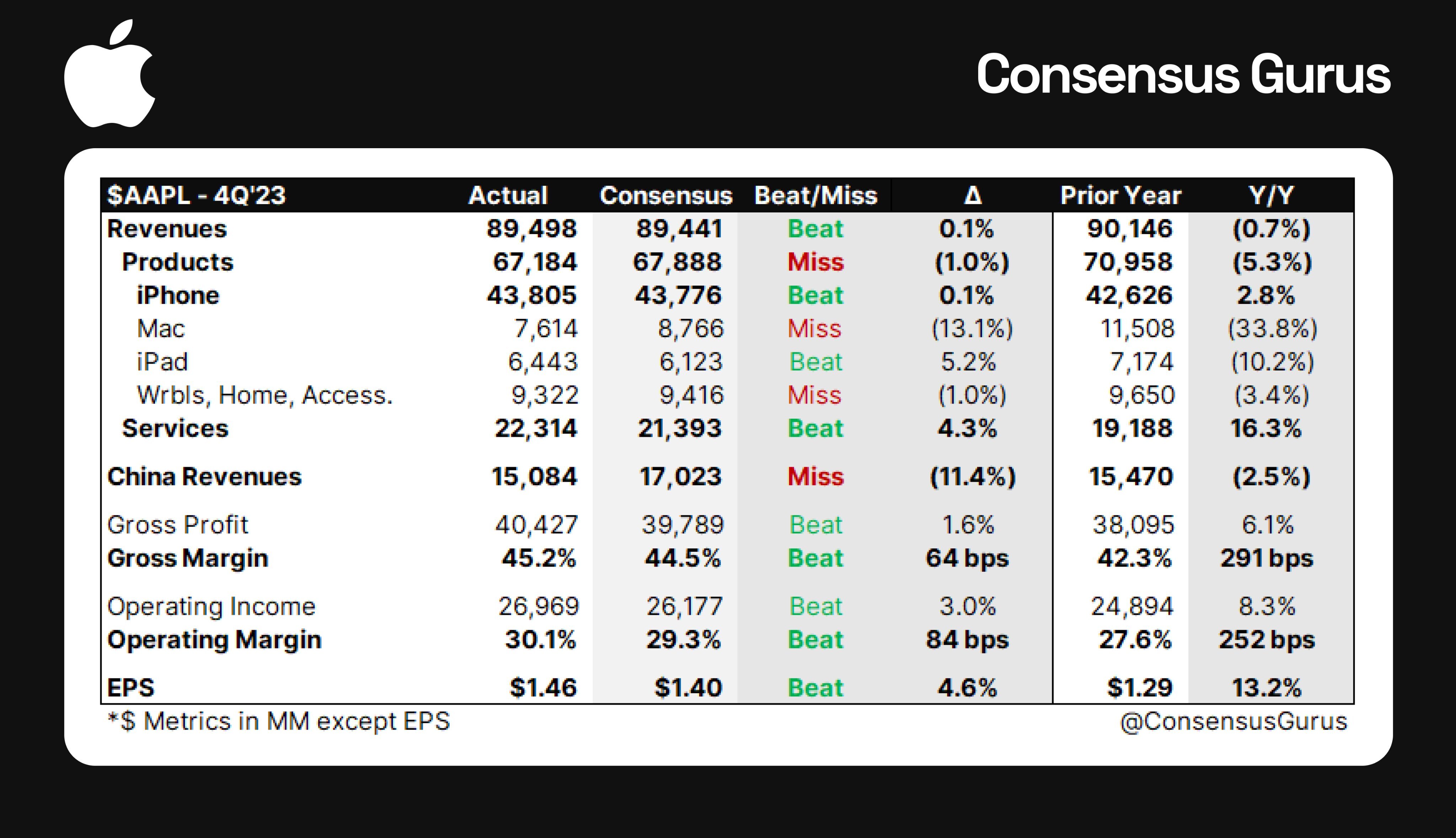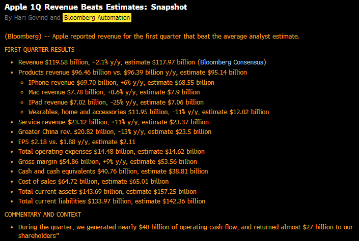 herbert_21 Februar 1, 2024 · bearbeitet Februar 1, 2024 von herbert_21 Apple Quartalszahlen EPS unter Erwartungen, Greater China -13% Services leicht unter Erwartungen Nachbörslich etwa -1% im Minus Kommentar: China Umsätze teilweise auch wegen Dollar Stärke ein Minus. Diesen Beitrag teilen Link zum Beitrag