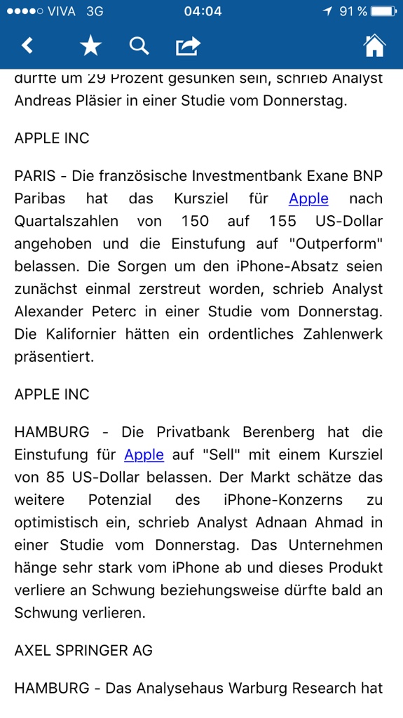 Toni Januar 6, 2016 Habe gerade gelesen, dass Apple ca. 200.000.000.000 Cash hat! Eine unvorstellbar hoher Cash-Berg.... Mit dem sie aber nicht viel anfangen können, ohne massiv Steuern zu zahlen - das meiste Geld liegt außerhalb der USA... Deswegen machen sie es auch erst, wenn es wirklich dringend nötig ist... Trotzdem verdient solch ein Cashberg einen Preisaufschlag bei der Aktie. Aber den Aufschlag will keiner geben. Wahrscheinlich ist die Aktie stark unterbewertet. So sehe ich das zumindest... Diesen Beitrag teilen Link zum Beitrag