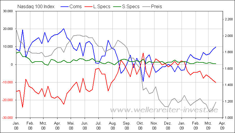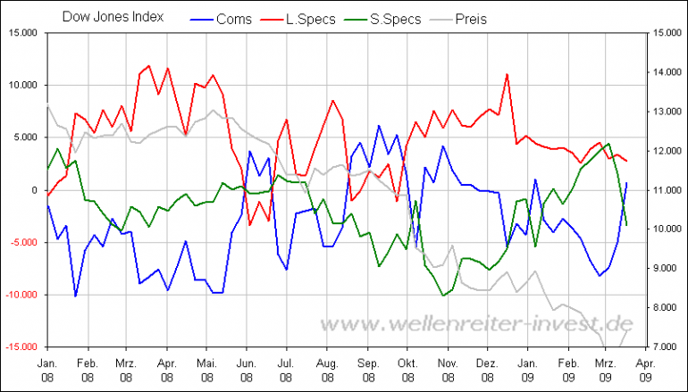 Bärenbulle März 22, 2009 Wenn ein Paar erklärende Worte dazu vergeben würden, nicht alle sind vom Fach (Icke, z.B.) Wir hatten das Thema weiter oben im Thread schon mal kurzeitig, daher hatte ich das nicht kommentiert. Sorry. Die CoT-Daten haben Sentiment-Charakter und unterscheiden folgende Anlegertypen: Der Commitment of Traders (CoT-Daten)-Report stellt die Positionierung der Trader - eingeteilt in drei Gruppierungen - dar. Die sogenannten "Commercials" sind die professionellen Hedger, die Trades der "Large Speculators" sind aufgrund ihrer Größe meldepflichtig, während die Small Speculators die Gruppe der nicht-meldepflichtigen Trades repräsentieren. Allerdings ist das auch eher ein kurzfristiger Indikator wie man an den Schwankungen sieht. Etwas platt ausgedrückt werden die Small-Specs eher als Kontraindikatoren betrachtet und die Coms als diejenigen, die die Marktrichtung vorgeben. Wenn die Coms long sind, also "committed" ist das tendenziell ein Zeichen für eine positive Marktentwicklung, da die Profis idR. über einen Informationsvorsprung gegenüber den Small Specs verfügen. Oder wie es hier glaube ich auch schon mal gesagt wurde: Lieber nicht gegen die Coms traden. Allerdings ganz so einfach ist es dann wohl doch nicht denn es gibt es wohl verschiedenen Rahmenbedingungen zu beachten wenn man die Daten richtig interpretieren will. Vielleicht kann ja jemand hier das mal erklären der besser damit vertraut ist als ich. Diesen Beitrag teilen Link zum Beitrag