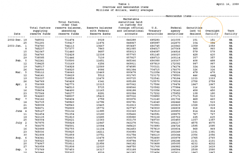 Bärenbulle April 22, 2009 · bearbeitet April 22, 2009 von Bärenbulle Mal eine blöde Frage in die Runde: Unter folgendem Link der FED: http://www.federalreserve.gov/releases/h41/hist/h41hist1.pdf findet sich folgende Statistik: Ist die umkringelte Spalte nicht das Pendant zur EZB Einlagenfazilität? Allerdings erscheinen mir die Werte relativ gering zu sein, da Sie selbst in Spitzenzeiten der Krise unter 30 Mrd. Dollar lagen. Diesen Beitrag teilen Link zum Beitrag