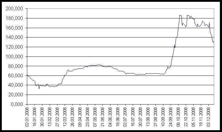 Bärenbulle Dezember 11, 2008 · bearbeitet Dezember 11, 2008 von Bärenbulle Wer meine Marktanalyse der letzten Woche gelesen hat, weiss dass ich inzwischen nach Indizien für eine aufziehende Depression suche - und leider finde ich aktuell fern der Statistiken jede Menge davon.Ich bin jetzt mal gespannt, wann eure Indikation auch in diese Richtung dreht. Deine Marktanalyse interessiert mich. Wo findet man die? Interbankenverkehr leichte Entspannung, aber heute (11.12) wieder ganz leichter Anstieg: Diesen Beitrag teilen Link zum Beitrag