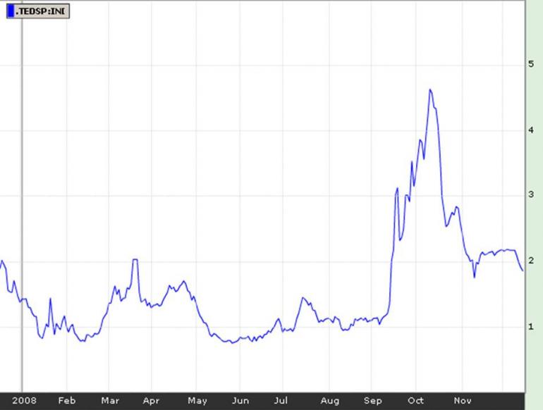 Bärenbulle Dezember 17, 2008 · bearbeitet Dezember 17, 2008 von Bärenbulle Ted-Spread reduziert sich weiter, diesmal sehr stark. Er fällt heute deutlich um weit über 20 Basispunkte: Diesen Beitrag teilen Link zum Beitrag